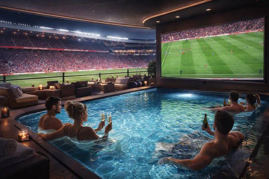 其中一大特色是,曼联新球场将设有一个VIP区,其中配备有游泳池,贵宾们可以在水中观看比赛。预计,这个贵宾区平均每场的费用为500英镑。